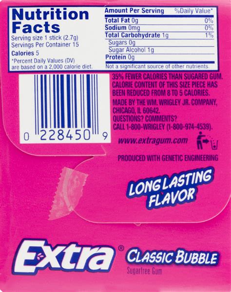 Extra Bubble Gum Ingredients. A product with 26 grams of total. Web extra gum includes these ingredients prior to 2019: